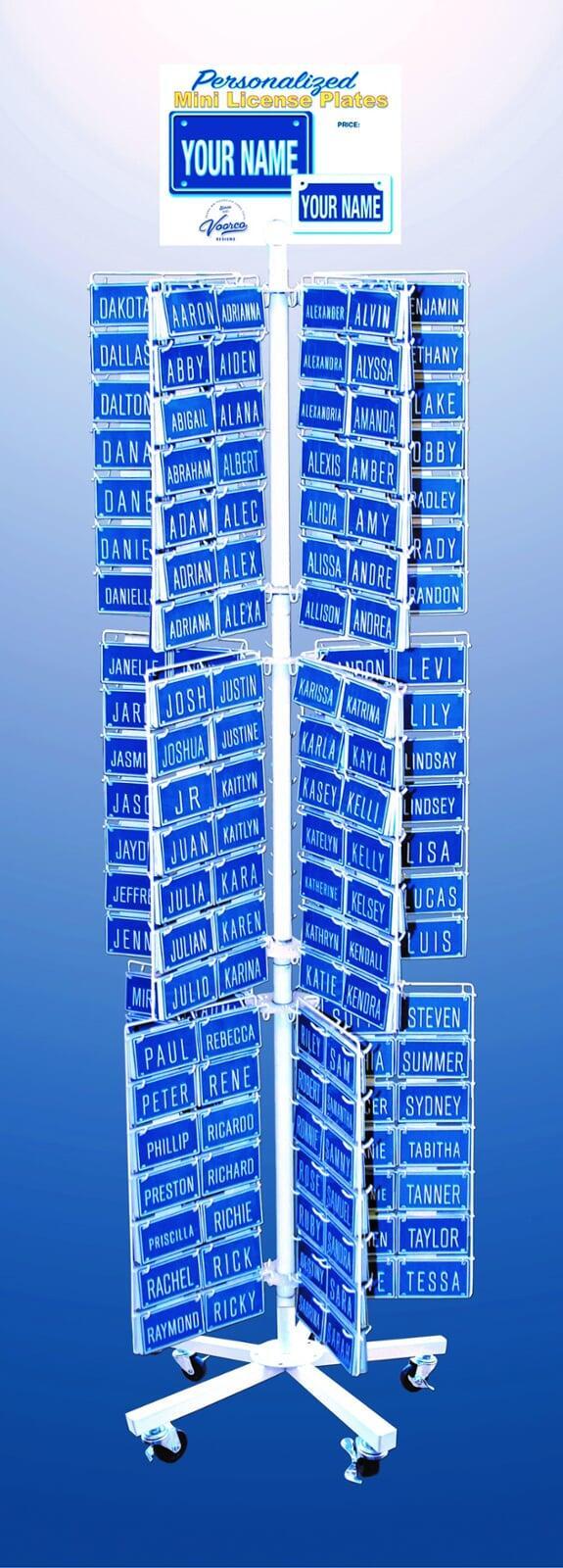 Voorco Design mini personalized license plates have been a very popular family tradition since 1963. The plates are a perfect accessory for a bicycle, stroller, wagon or golf cart.